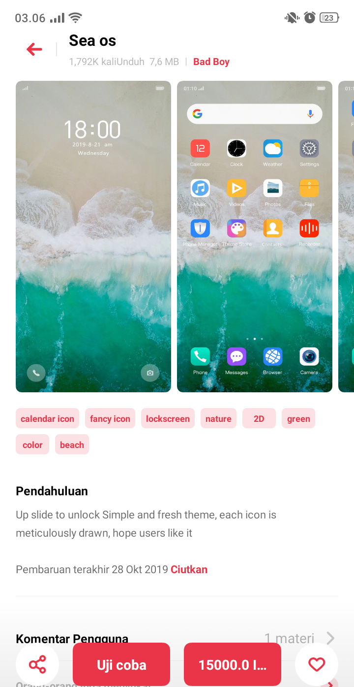 *Ingin dapatkan tema ini dengan harga yang sangat terjangkau? Silahkan masuk ke aplikasi Theme Store lalu Search 'Sea OS' Setelah itu Beli lalu terapkan dan nikmati fitur dan desain lengkap dari Tema Sea OS.